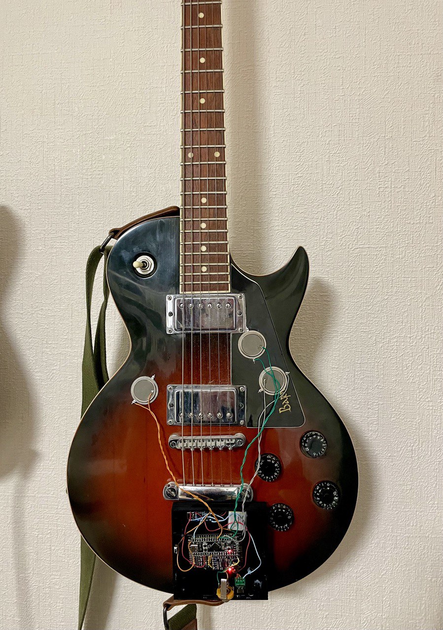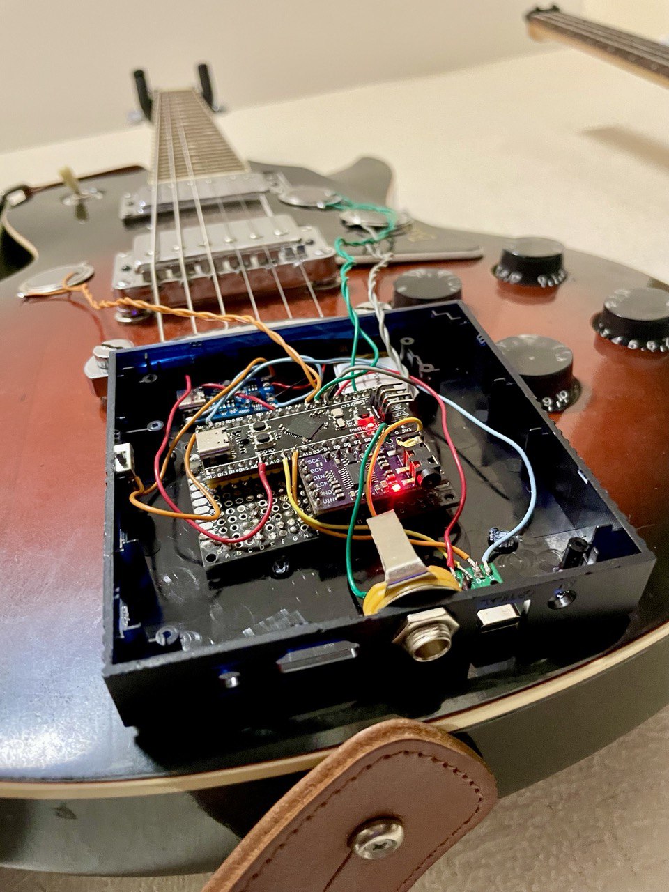 Устройство можно встроить в корпус гитары. Главный сценарий использования: гитарист аккомпанирует своей игре на гитаре партией ударных. Устройство включает в себя также гитарный предусилитель с эквалайзером.