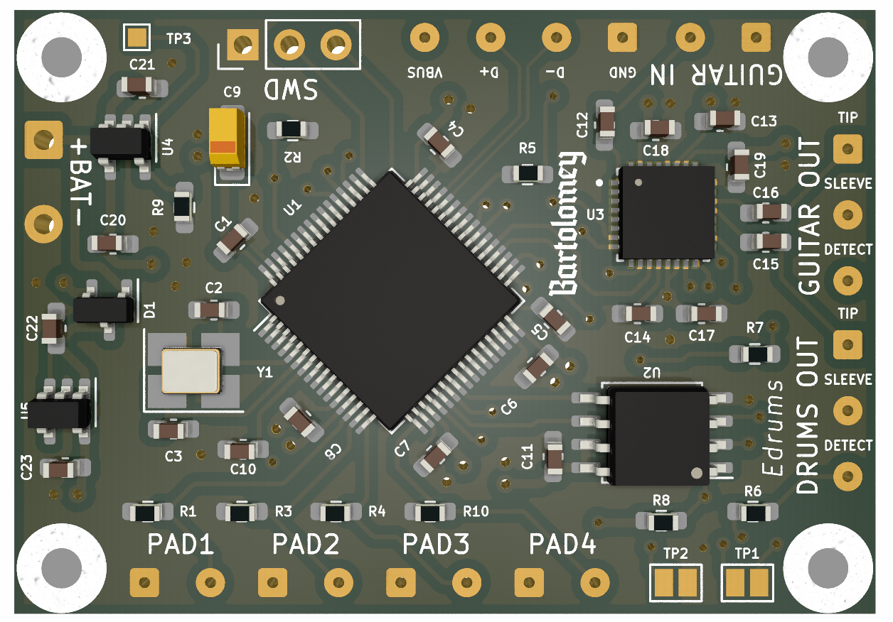 Edrums - это очень компактные дешевые электронные ударные. Плата имеет габариты 47x33мм.